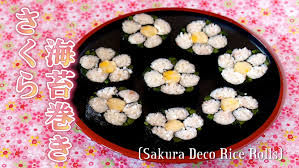 You may, however find it easier to make rounded flowers similar to the photo below. You simply roll all your small maki rolls in a larger sheet of nori when you have made them. To make a daisy I would suggest mixing cooked egg yolk to some of the rice for the central maki roll. The five outer rolls can remain white and when they are then all wrapped in an outer sheet of nori you have a very pretty daisy.